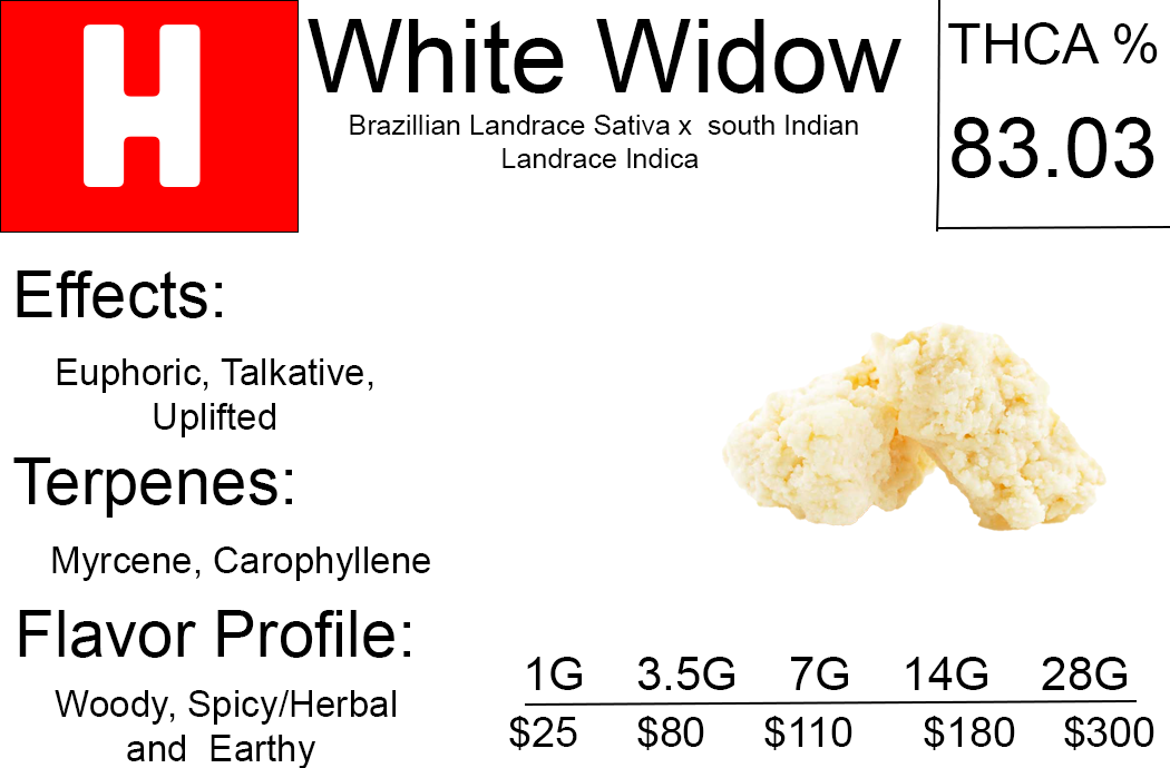 White Widow THCA Crumble is a balanced hybrid concentrate with a citrusy flavor, hints of lemon, and a peppery finish