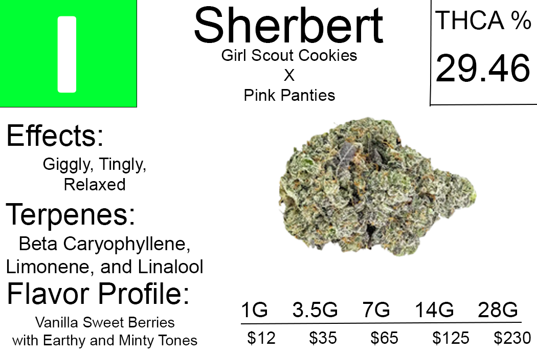 Sherbet THCA flower pounds, quarter pounds and half pounds.