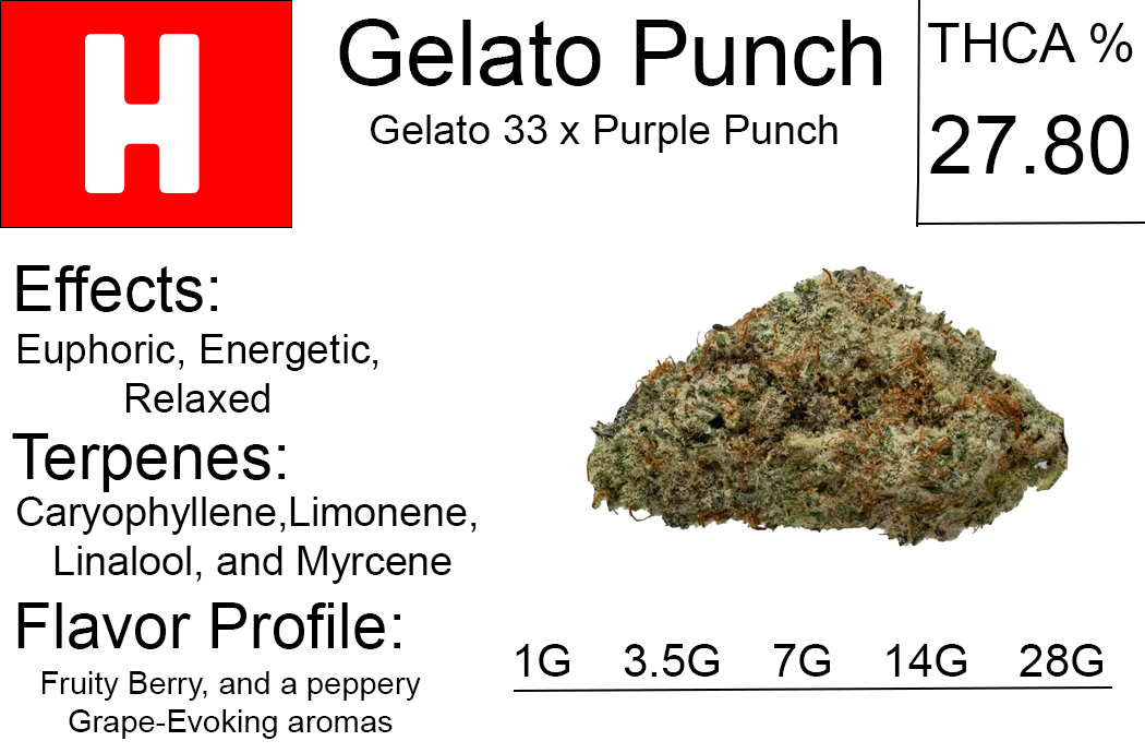 Gelato Punch is a hybrid weed strain made by crossing Gelato and Purple Punch.