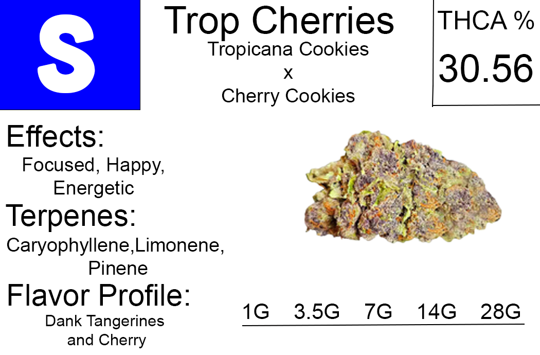 Tropicana Cookies THCA Flower, with its THCA content of 24.15%, dazzles with a citrusy aroma and vibrant purple hues,