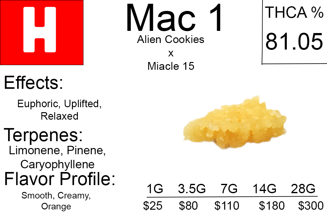 Our MAC 1 THCA Crumble is a premium, balanced hybrid concentrate with a smooth, creamy flavor profile accented by sou